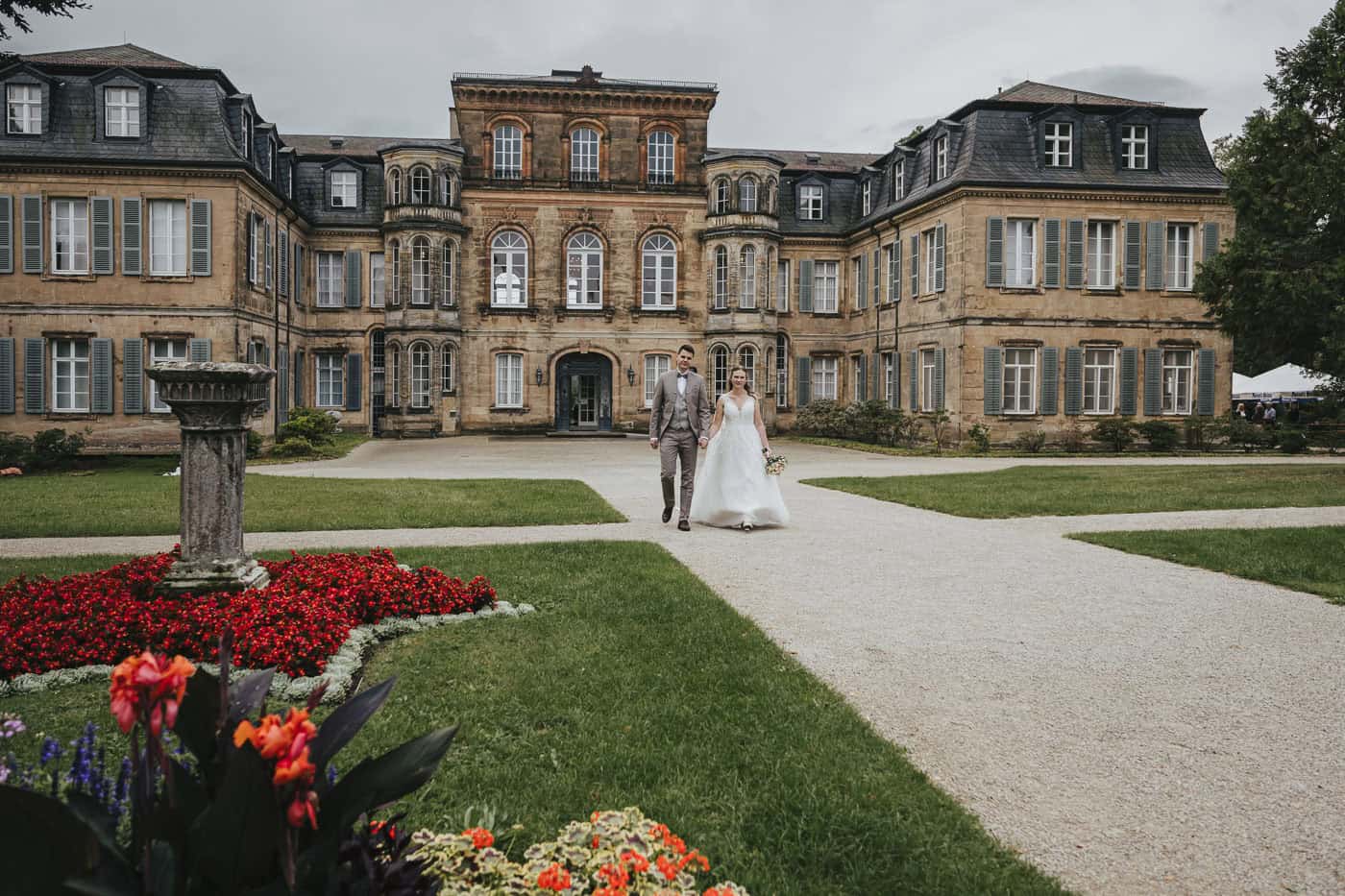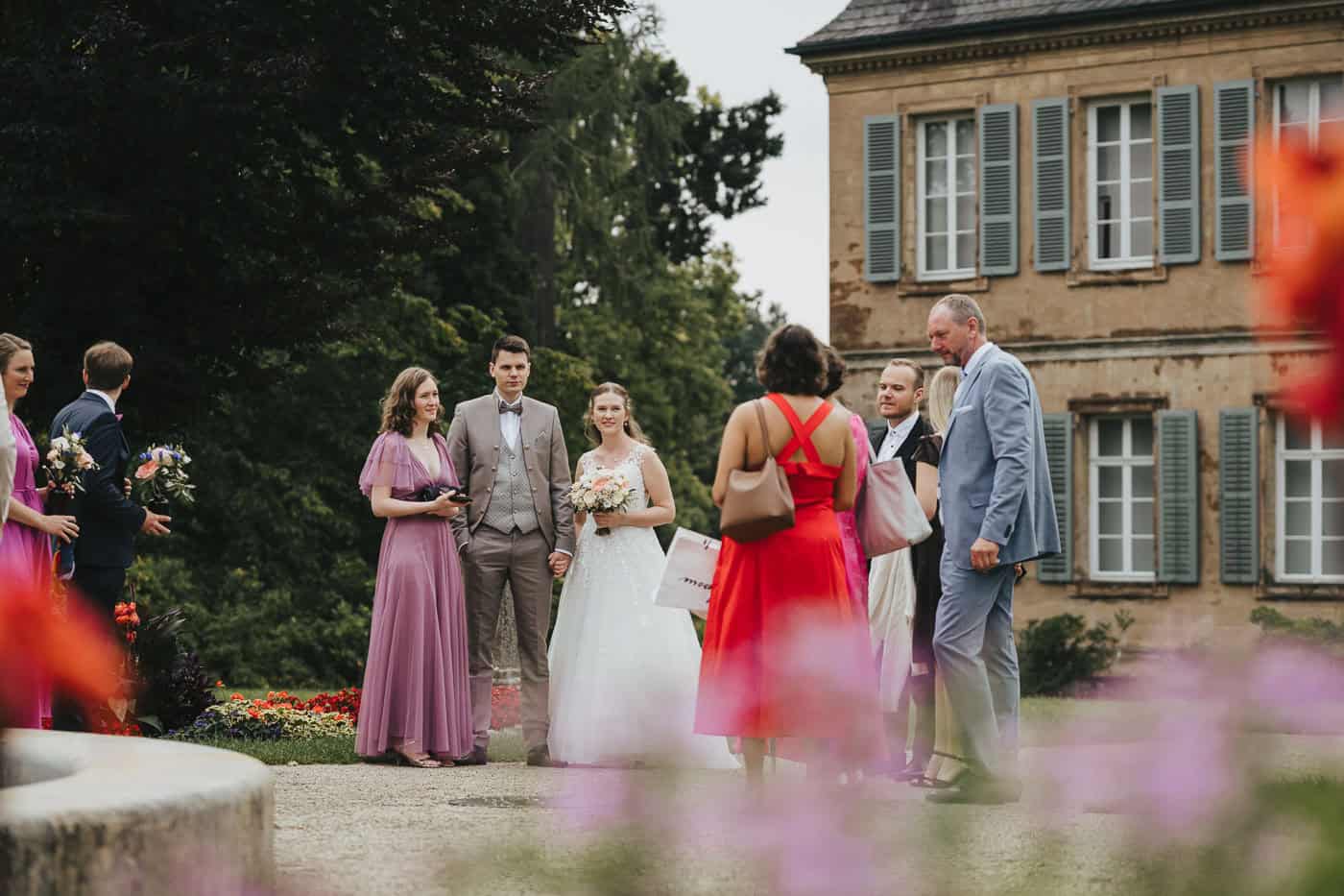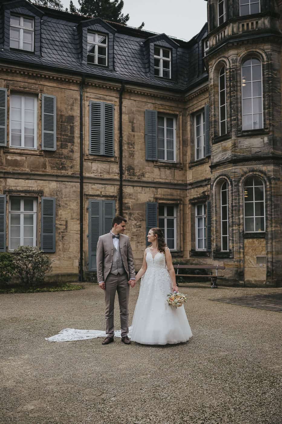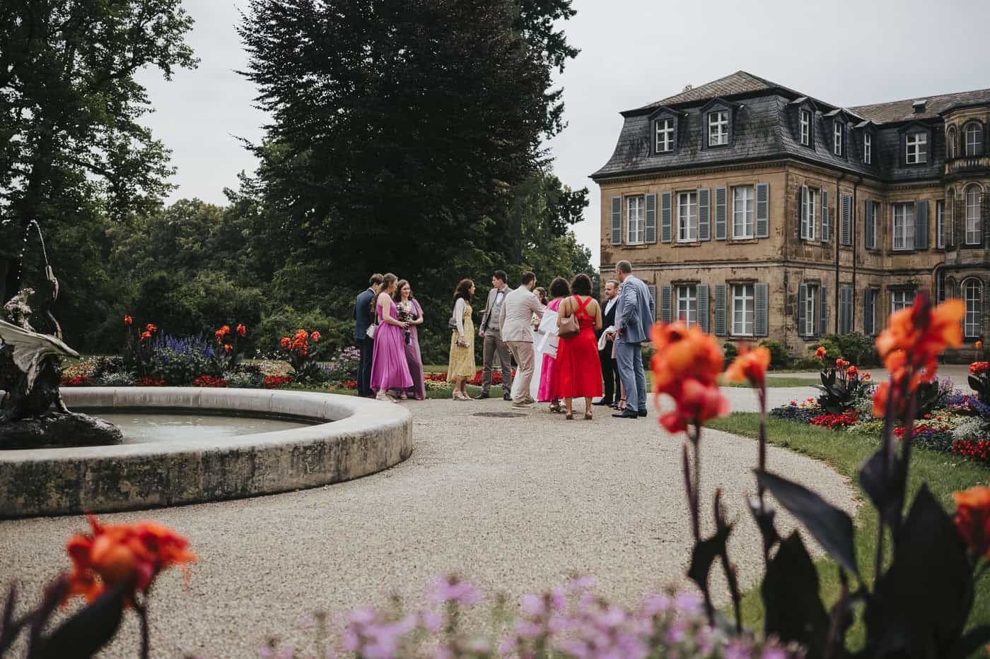 Das Schloss Fantaisie in Eckersdorf ist eine beliebte Location für Hochzeiten in Franken. Die historische Architektur und die weitläufige Parkanlage schaffen eine ruhige, elegante Atmosphäre für emotionale Trauungen. Im Schlosspark umgeben von alten Bäumen und klassischem Schlossflair entstanden ganz wunderbare Bilder.