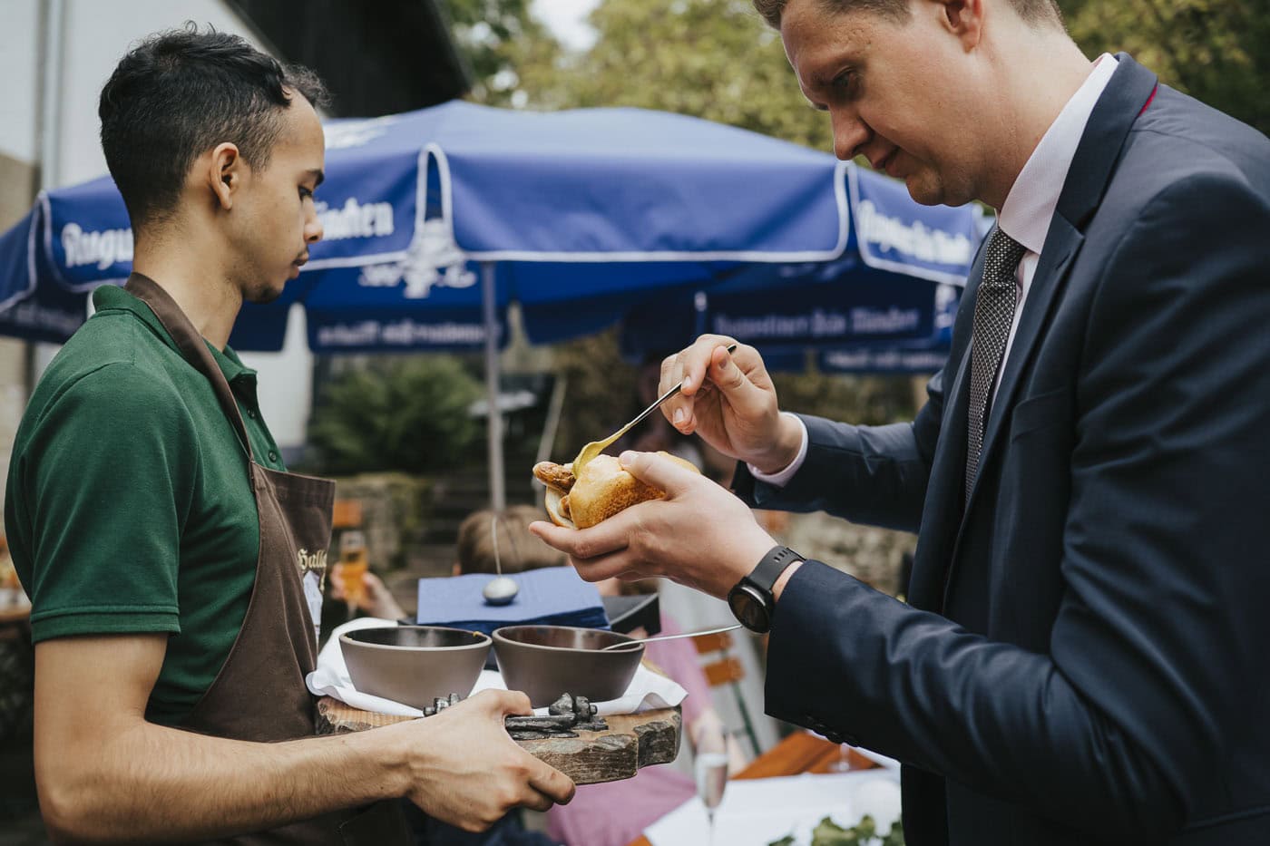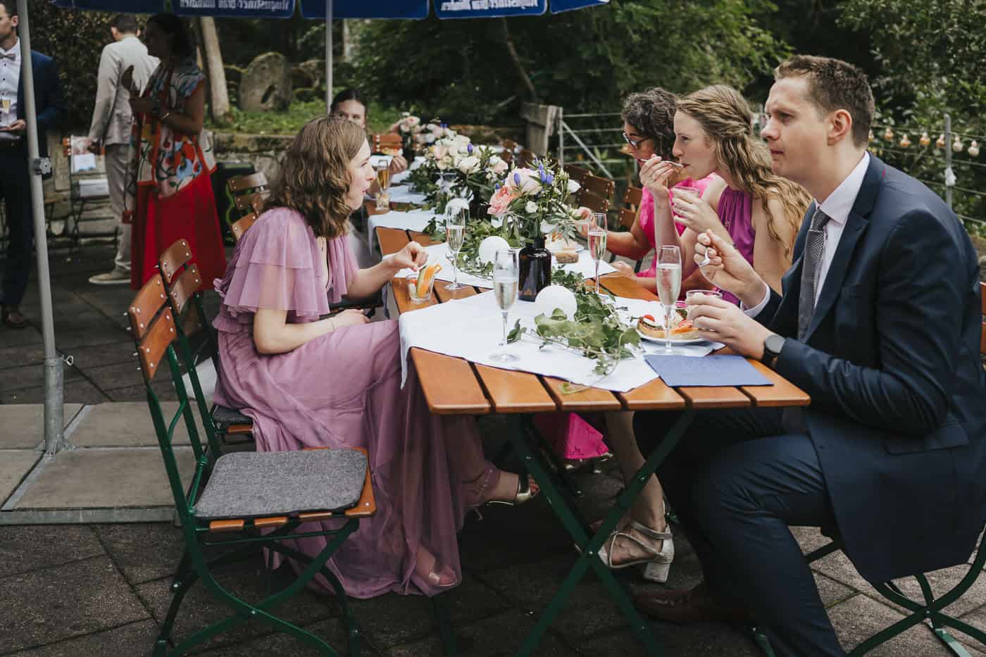 Nach der Trauung ging es weiter zur Hallermühle in Lehen, die sich perfekt für eine ausgelassene Hochzeitsfeier eignet. Hier stand das gemeinsame Feiern im Mittelpunkt – entspannt, herzlich und ganz im eigenen Tempo.