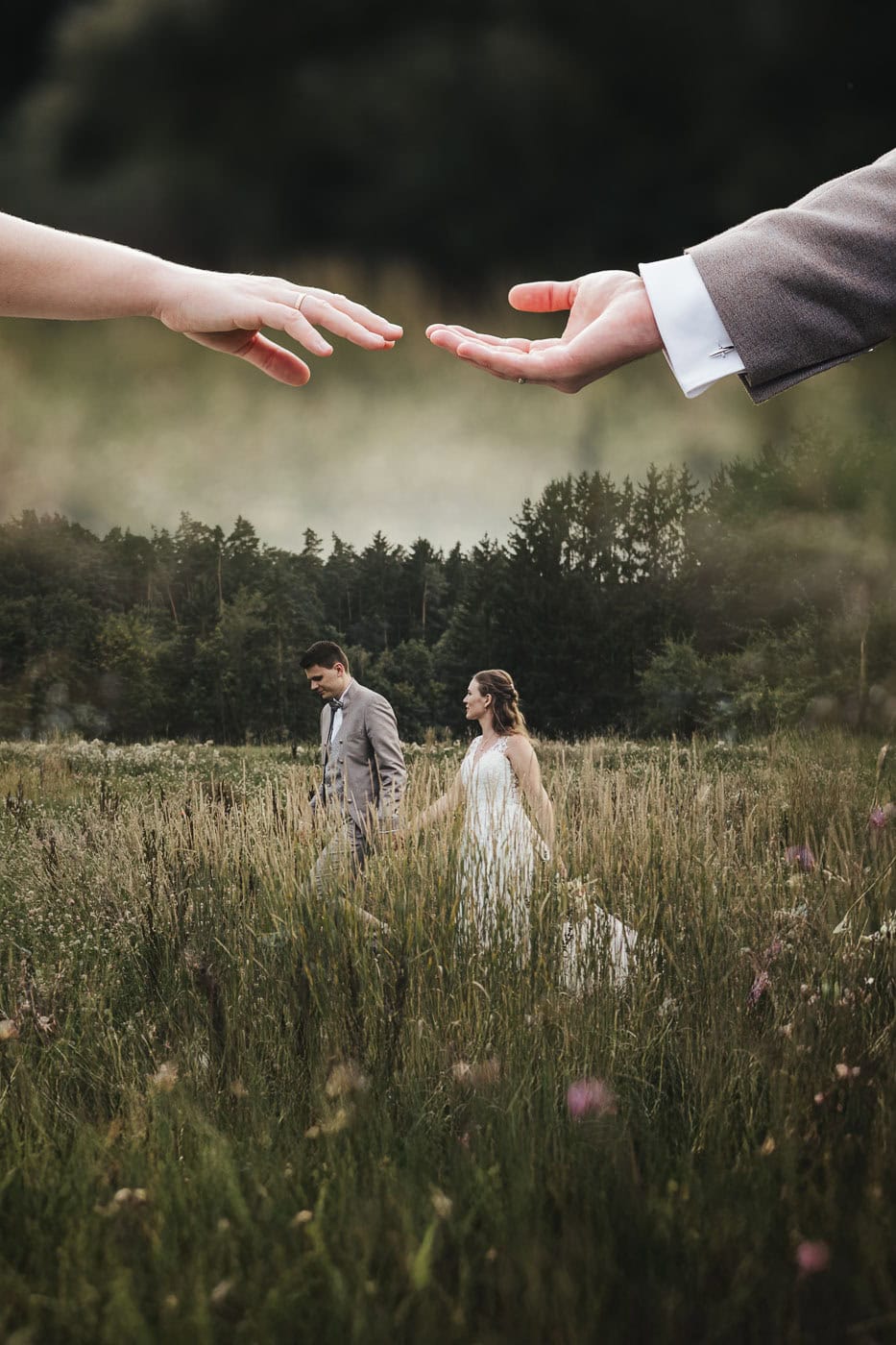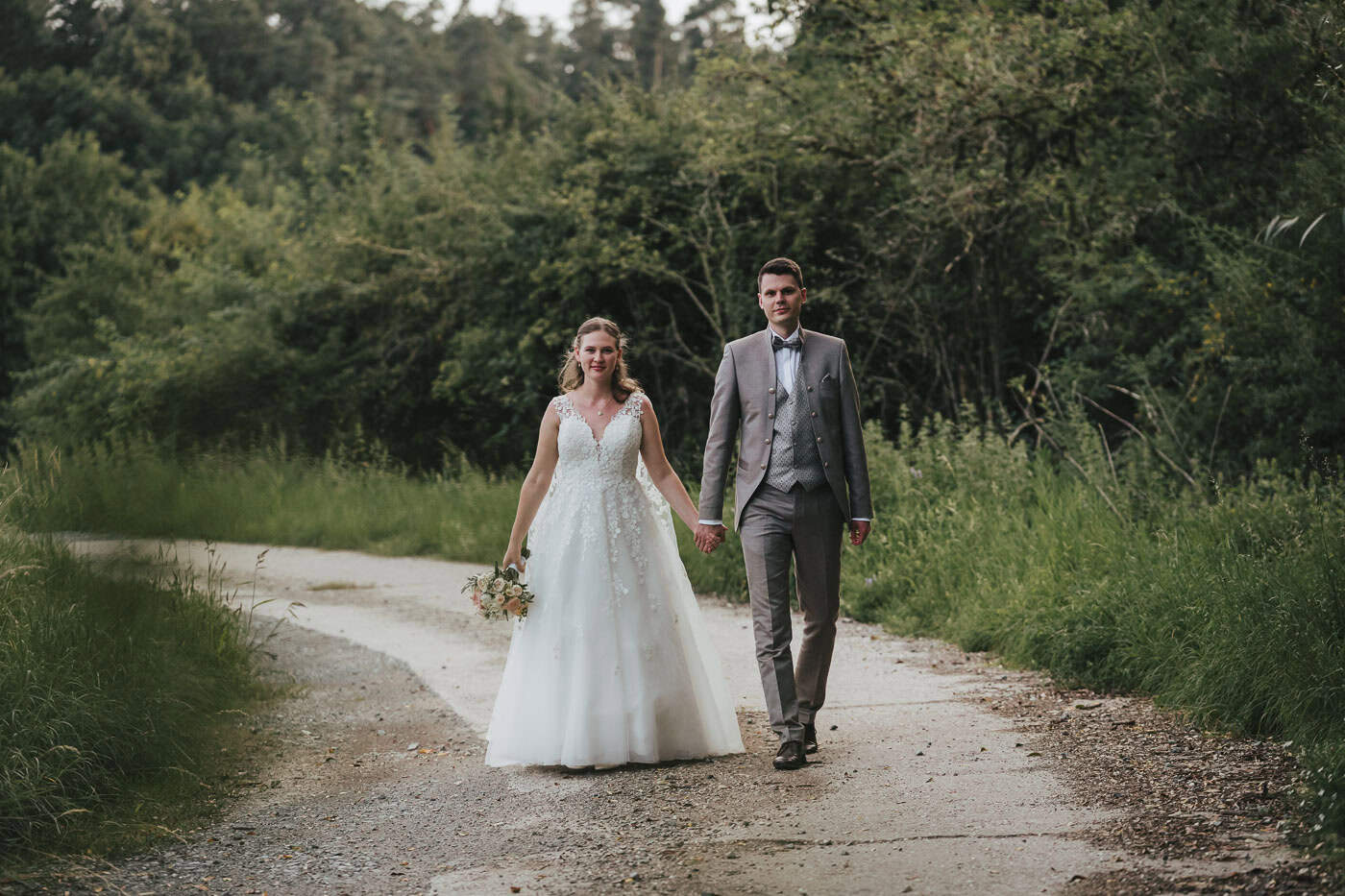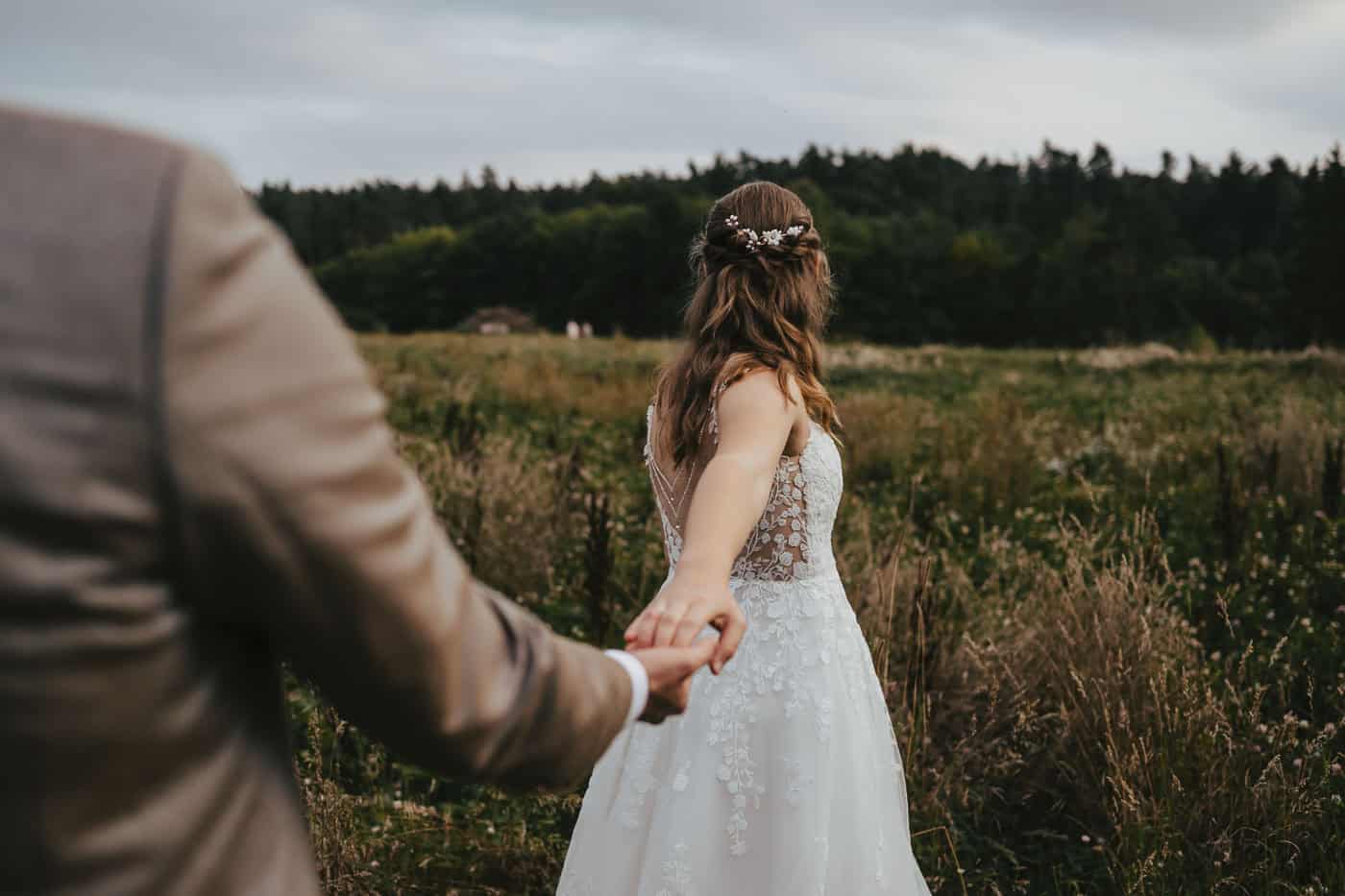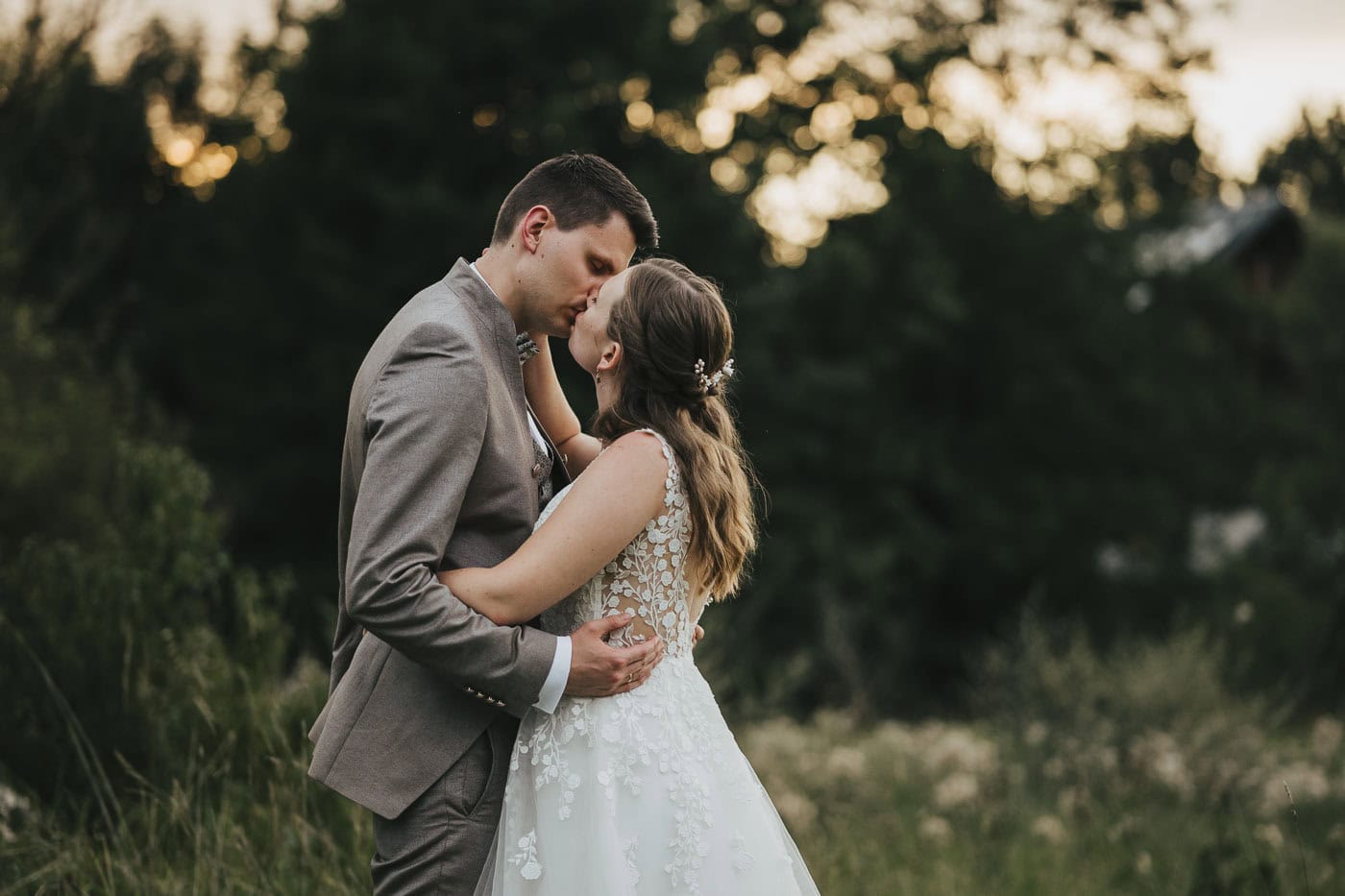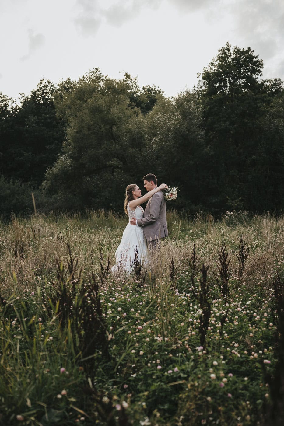 Für das Brautpaarshooting bietet die Umgebung rund um die Hallermühle ganz tolle Möglichkeiten. Wiesen und Felder mit dem Sonnenuntergang im Hintergrund. So entstanden natürliche Hochzeitsfotos, die die Stimmung des Tages bestmöglich einfangen konnten.